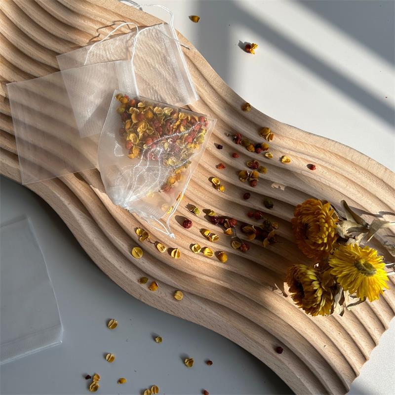 Пустая чайная мяшок для кукурузнага валакна, які не вытканы, падыходзіць як для парашкавага гарбаты, так і для парашка. Дэмаратыўная без уцечкі парашка і з сярэдняй цаной яго можа быць запячатаны цеплавым герметыкам.